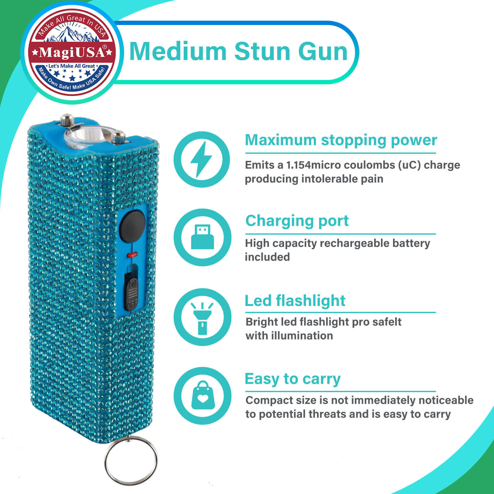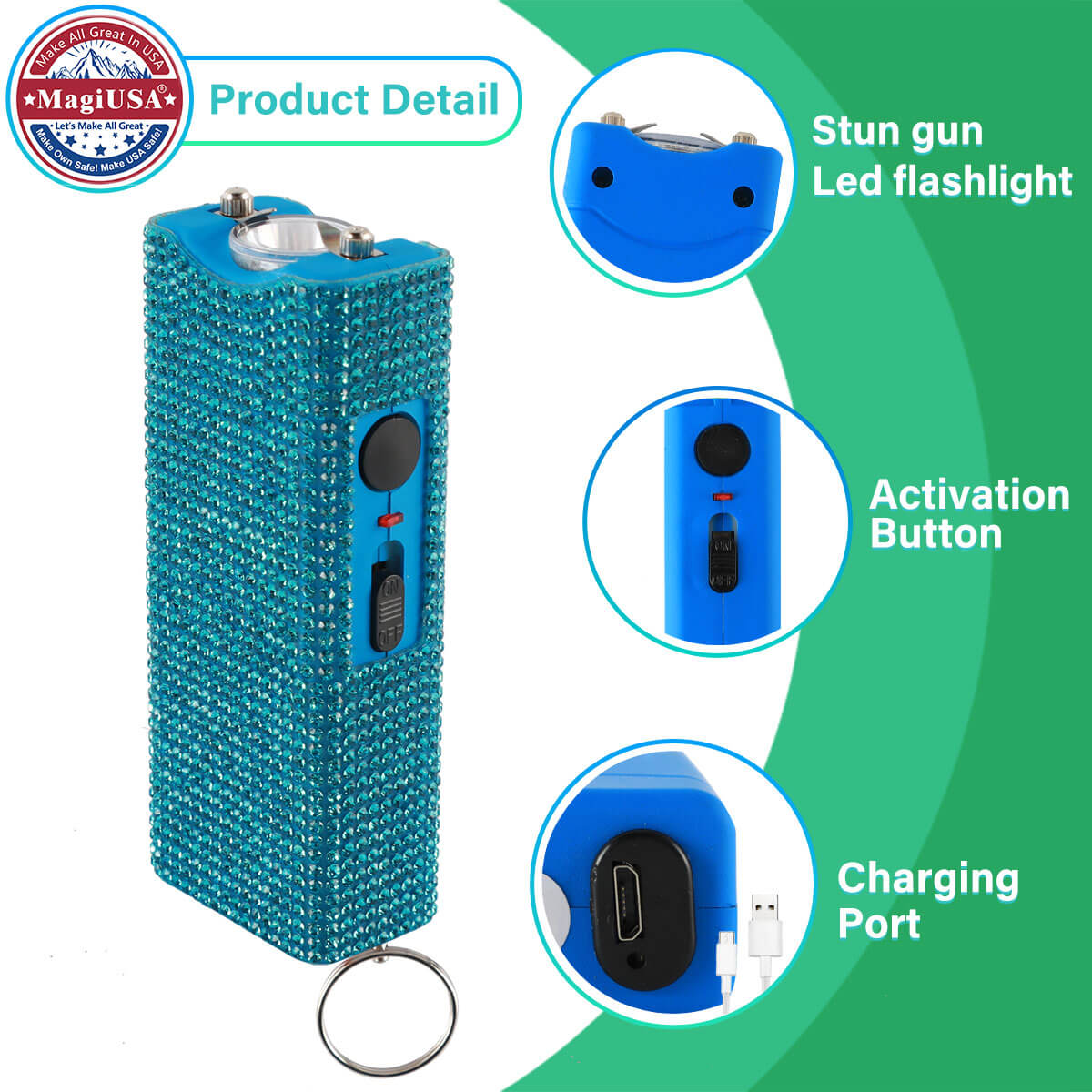MagiUSA recently launched a new fashion collection of self-defense devices. The blue bling-bling stun gun keychain set is designed for the daily use of vulnerable groups.