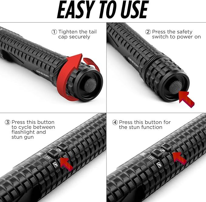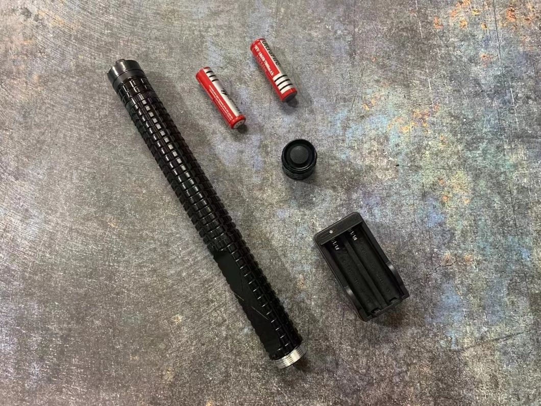 1.Size: ¢32×350mm 2.Power supply: 2 high-performance 18650 RI batteries 3.Function: High-voltage electric shock, strong light illumination 4.Charging method: seat charge 5.Shell material: aluminum alloy 6.Weight: 450g
