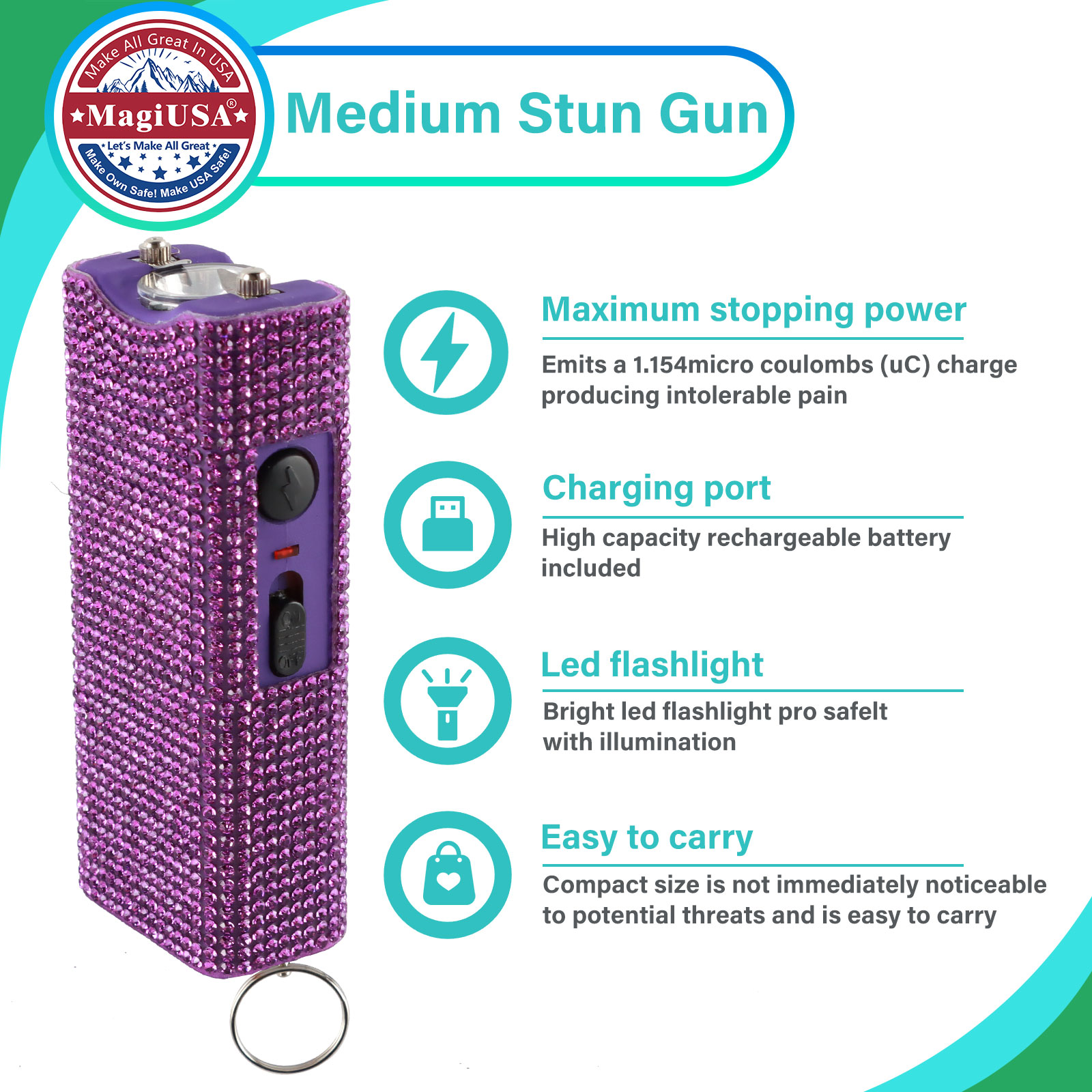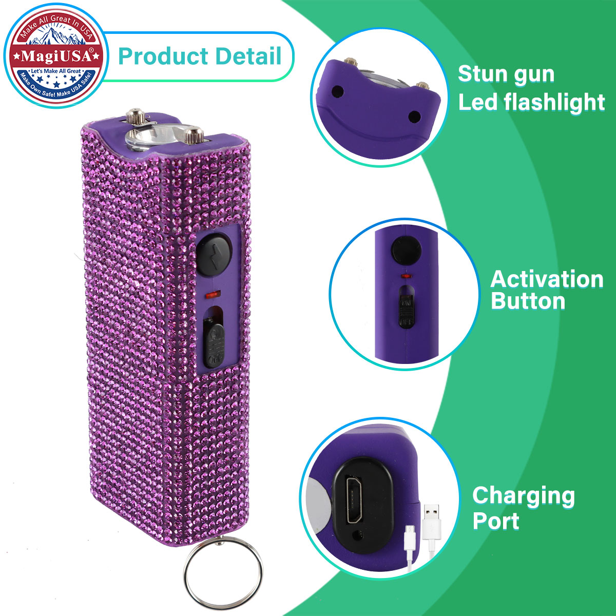 MagiUSA recently launched a new fashion collection of self-defense devices. The purple bling-bling stun gun keychain set is designed for the daily use of vulnerable groups.
