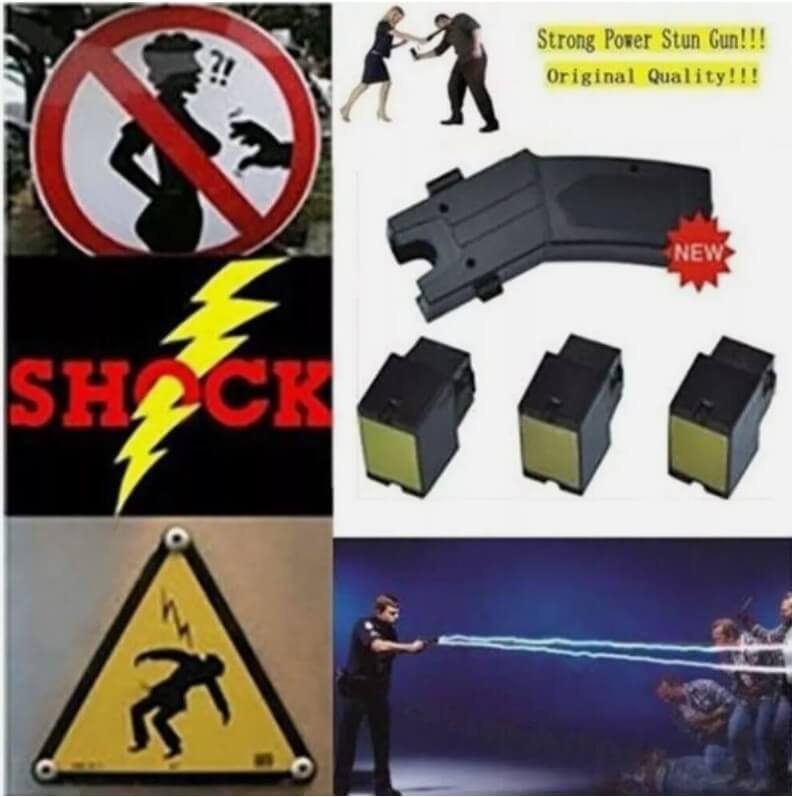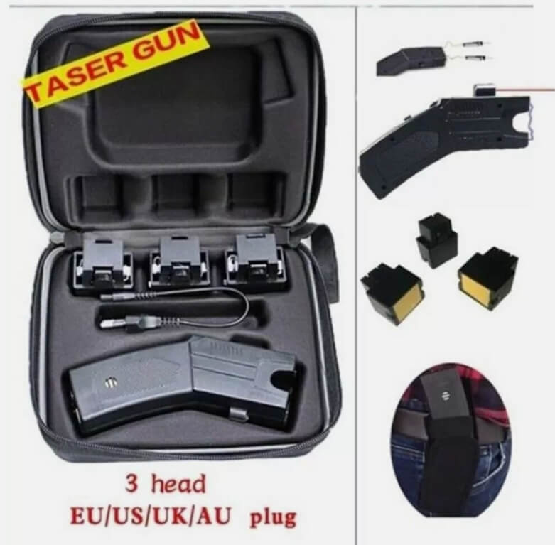 Self-defense: This package includes (1) Host Stun Gun, (3) Replaceable cartridges, (1) Charger, (1) Holster, and (1) Instruction.