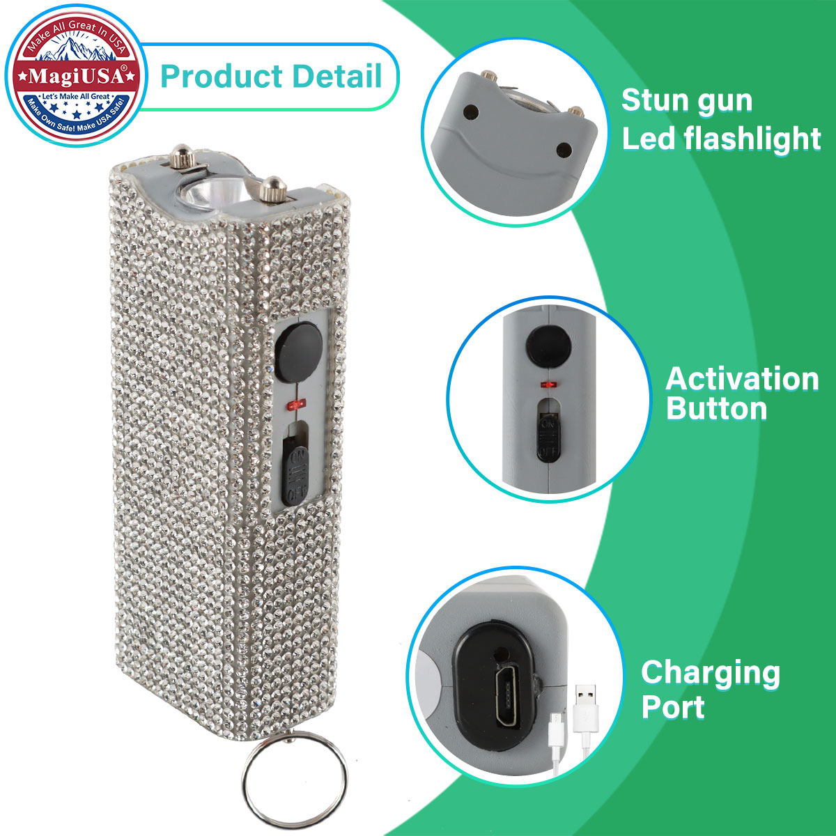 MagiUSA recently launched a new fashion collection of self-defense devices. The silver bling-bling stun gun keychain set is designed for the daily use of vulnerable groups.