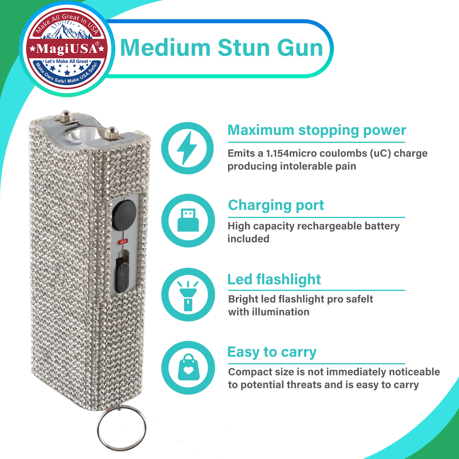 Silver Bling-Bling Stun Gun | Self Defense Keychain Set