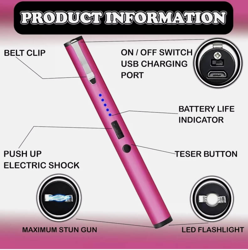 The Pain Pen stun gun is small but strong enough to scare the attackers. Looks just like a real pen giving you discrete protection great deterrent-just test firing this unit into the air often enough to stop attacker.Carrying in your purse or backpack and be protected always.USB charging cord(Included).